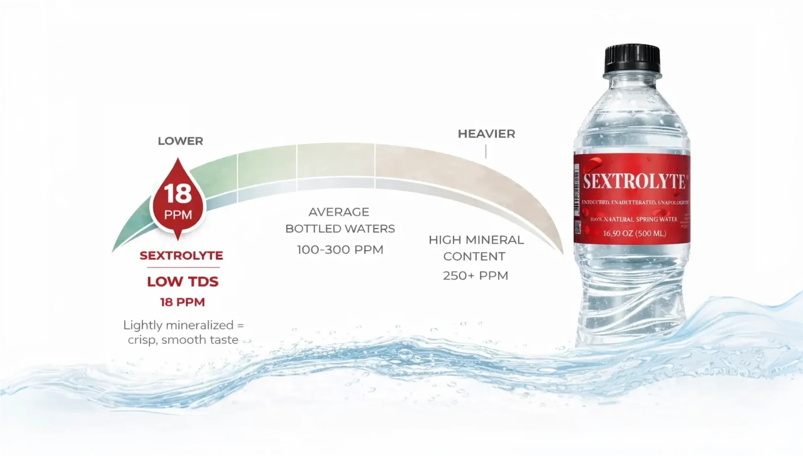 SEXTROLYTE protected spring source contributes to its naturally low TDS. with a clean. refreshing. and crisp character.